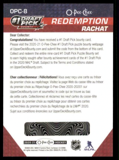 2020-21 O-Pee-Chee #1 Draft Pick Bounty Puzzle #OPC8 Redemption Card 8